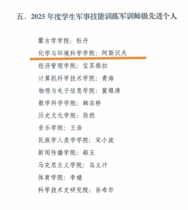 本次军训中,我院捷报频传,收获多项荣誉:荣获“宣传报道先进集体第四名”和“歌咏比赛先进集体第七名”。团总支副书记阿斯汉夫被评为“2025年度学生军事技能训练师级先进个人”。这些成绩不仅是对集体努力的肯定,更是这段特殊经历中绽放的精神之花。